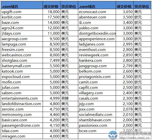 “礼物”域名12万元领衔!韩国最大比特币交易所买走korbit.com?三五互联(35.com)6月7日消息,最新一期的sedo交易榜出炉,本期上榜的域名共有65个,其中卖价最贵的是英文域名upgift.com,成交价为18,000美元,约合人民币12万元。