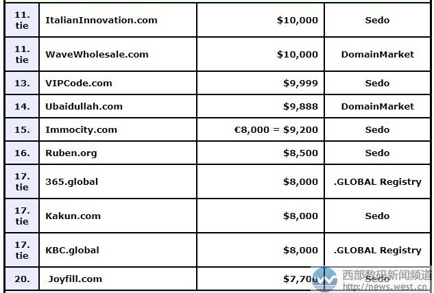 DN榜:比特币风头太盛!3月注册的域名bitcoincash.org卖出 6位数!三五互联(35.com)7月20日消息,本期的DN交易榜(7.10-7.16)上,.com域名不再完全占据榜单,而是出现国别域名、新顶级域名、其他域名百花齐放的态势。比如,本期夺得DN冠军的便是域名bitcoincash.org,成交价为48,888美元,约合人民币33万元。