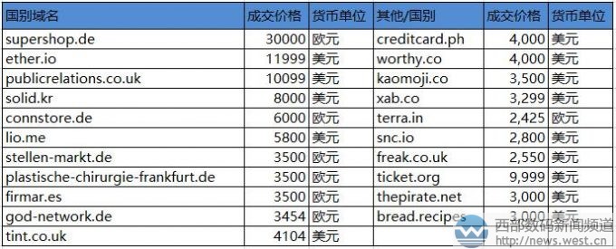先来看国别域名,国别域名中除了.cn就属.de域名zui为给力,sedo榜上也多次曝出.de域名高价成交的消息。本次以30,000欧元,折合人民币超23万元成交的supershop.de就表现不俗,该域名具有“超级商店”的意思,电商含义明显,适合搭建在线商城。在新零售日益升温的形势下,好域名对于传统零售商也具有重要意义。 域名ether.io成交价为11999美元,约合人民币7.6万元,该域名是英属印度洋领地域名,具有“醚、苍穹、太空”的含义,适合化学或太空等领域应用。另外,有“公共关系”之意的域名publicrelations.co.uk以10099美元结拍,该域名虽然字符略长,但含义直观清晰,适合搭建公共关系相关网站平台。
